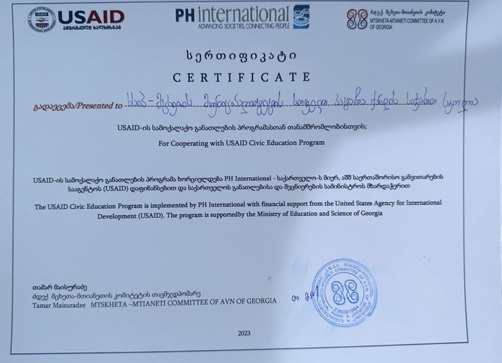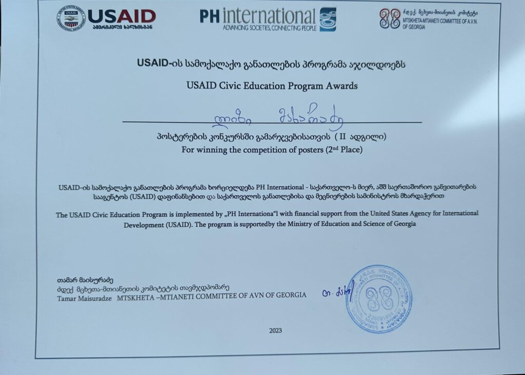 პატარა ქანდის საჯარო სკოლა მადლობას უხდის USAID-ის სამოქალაქო განათლების პროგრამას და პარტნიორ ორგანიზაციას!